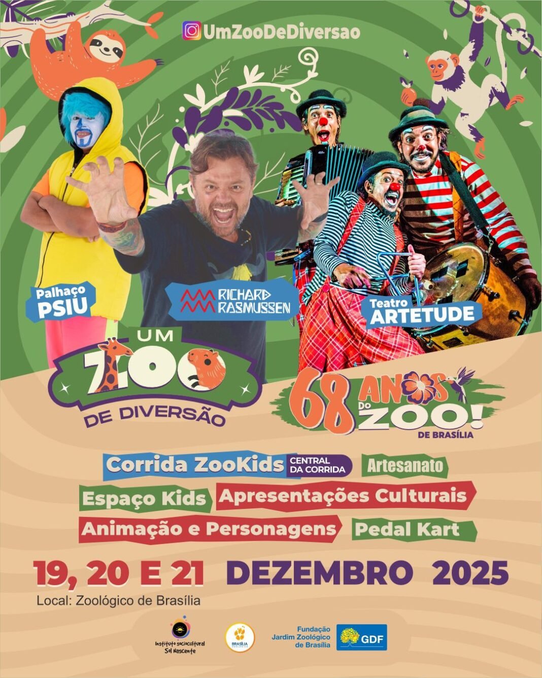 No mês de aniversário de 68 anos do Jardim Zoológico de Brasília, criado em 1957 como equipamento público fundamental para a conservação da biodiversidade local, ocorre o projeto “Um Zoo de Diversão” com uma grande programação para todos os públicos nos dias 19, 20 e 21 de dezembro, a partir das 9h da manhã. O evento reforça o papel do Zoo como espaço de lazer, cultura e educação ambiental, aproximando a comunidade do patrimônio natural do Distrito Federal.