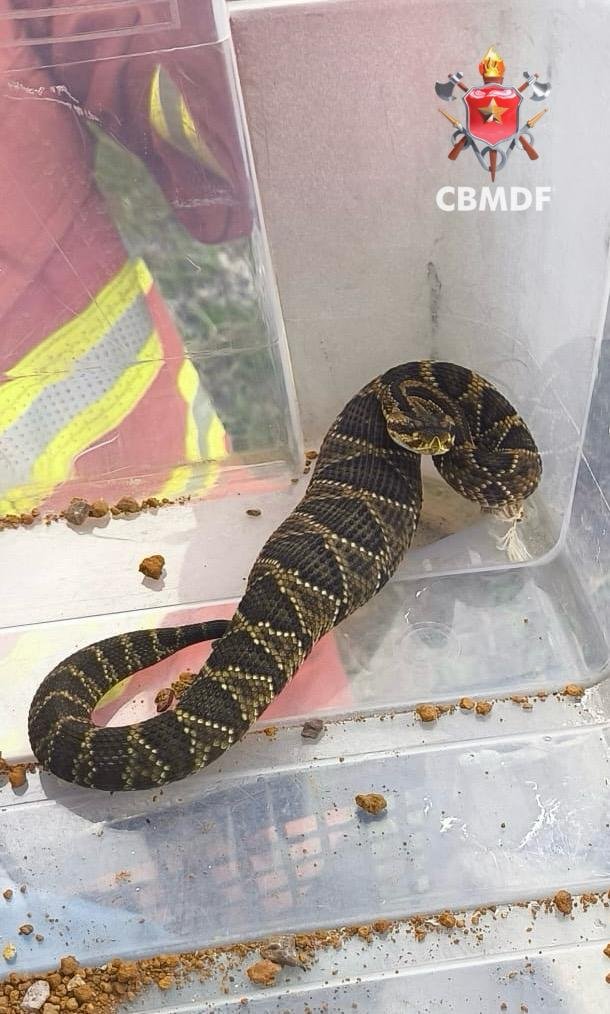 A serpente foi transportada e entregue ao Hospital e Centro de Reabilitação da Fauna Silvestre do Distrito Federal (HFAUS) para avaliação e posterior destinação adequada.