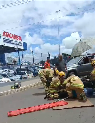 O CBMDF atendeu a ocorrência de colisão de veículos, carro e motocicleta, às 10h37, no início do polo de modas, no Guará II. A vítima, condutor da motocicleta, foi avaliada pelos socorristas, apresentava escoriações pelo corpo, após regulação médica foi transportado para o hospital, consciente e orientado.