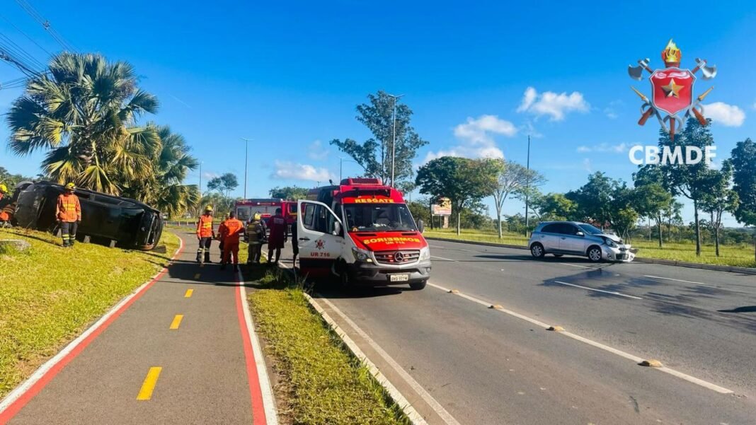 O Corpo de Bombeiros Militar do Distrito Federal (CBMDF) atendeu a ocorrência de capotamento, às 08h00 deste domingo (05/04/2026), nas proximidades do balão de acesso à Estrada Parque Guará (EPGU) empenhando quatro viaturas de socorro.